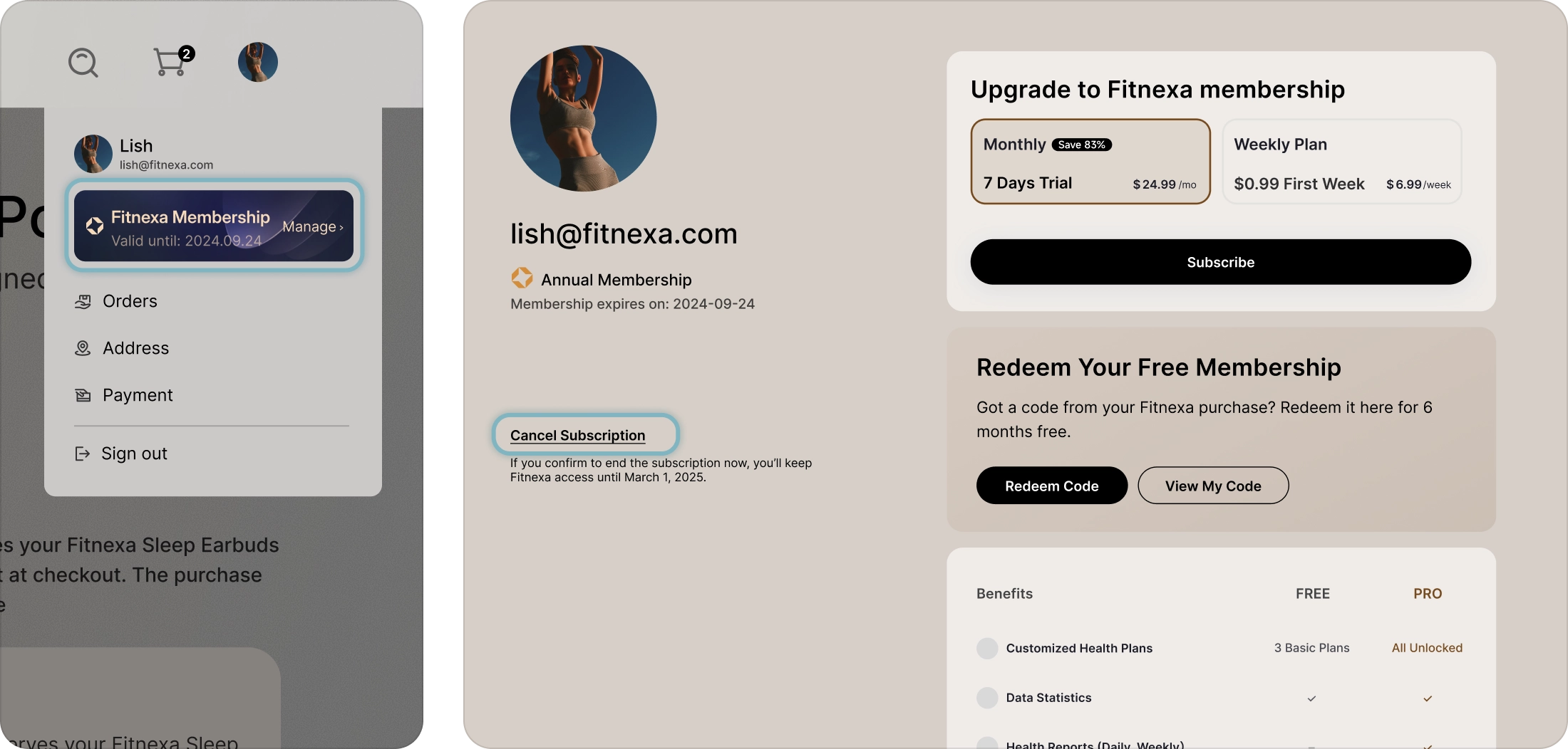 Manage Fitnexa Subscription